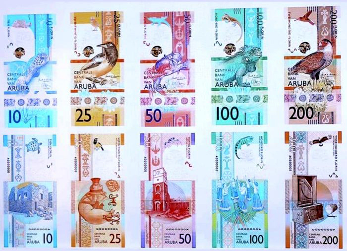 The Central Bank of Aruba (Banco Central di Aruba) introduced the First Series of Banknotes with the issue date as 01.01.2019, in the denominations of 5, 10, 25,50 and 100 Florin.