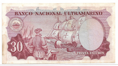 In 1959, standard Banknotes were introduced by the Banco Nacional Ultramarino in denominations of 30 (Red), 60 (Violet), 100 (Blue), 300 (Red), 600 (Green) and 1000 (Brown-green) Escudos.