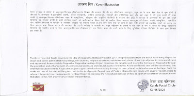 2952) "ALAPPUZHA HERITAGE PROJECT" (KERALA), India: Kerala Postal Circle of Indiapost has issued a Special Cover (SC) from its Alappuzha Post Office: Date of Special Cover issue: 20.11.2021: