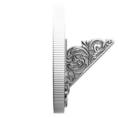 - Frosted to perfection. The acanthus leaf motif has a timeless look that harkens back to a bygone era, while various frostings highlight different design elements and give the coin a more brushed appearance.